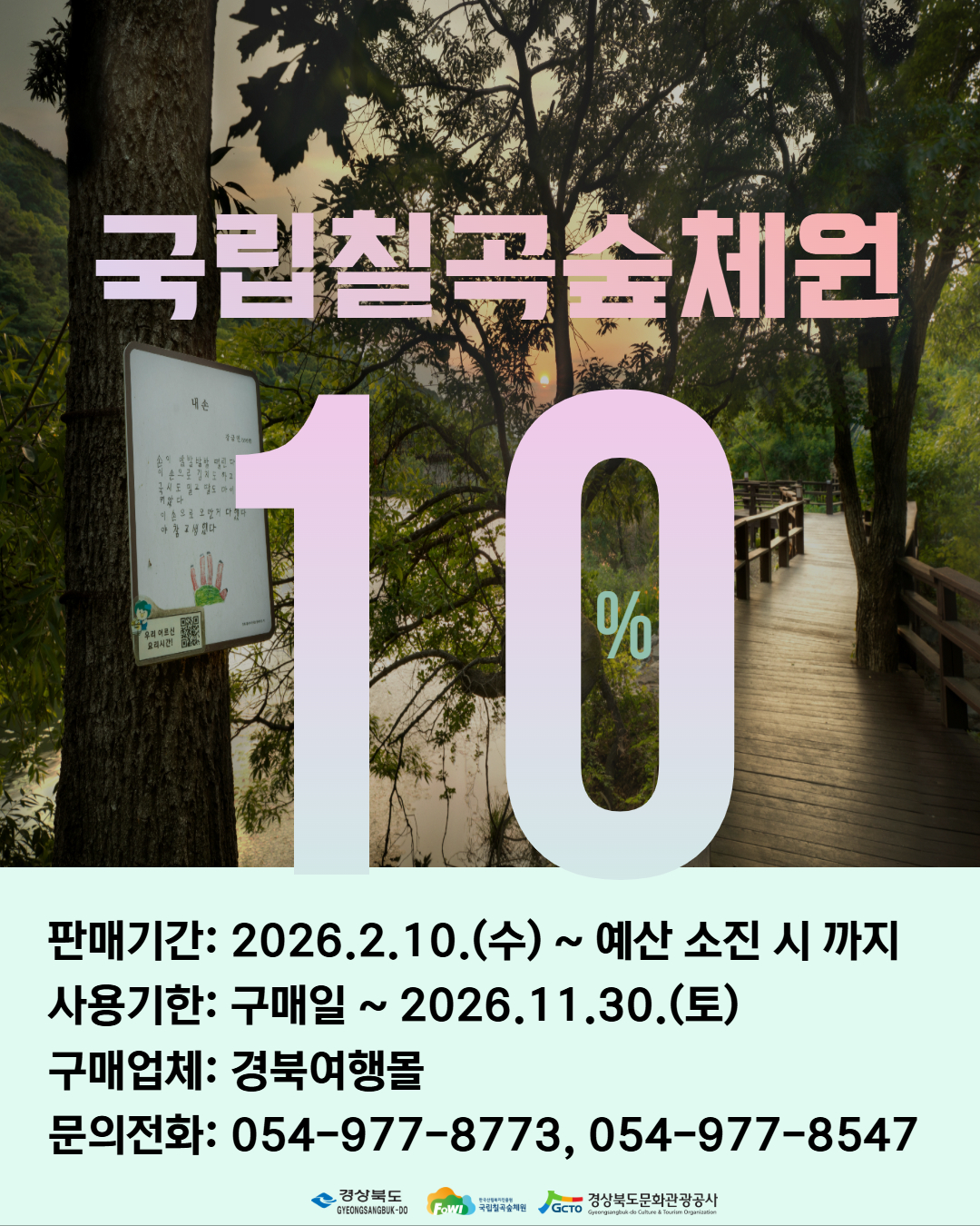 1. [클릭] 국립칠곡숲체원(객실+프로그램) 단독 할인 (바로가기)