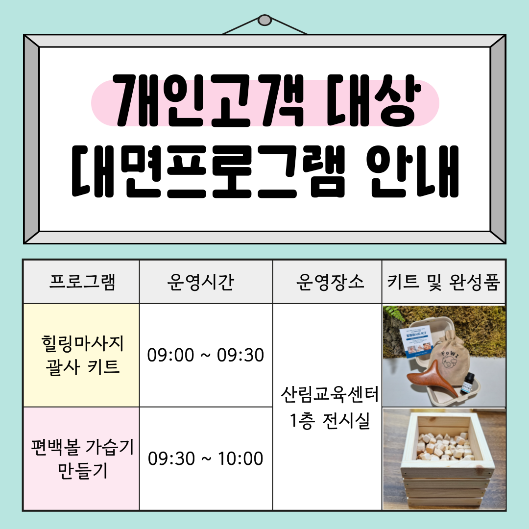 숲이 주는 혜택을 모든 국민이 누릴 수 있도록 다양한 프로그램을 제공합니다.