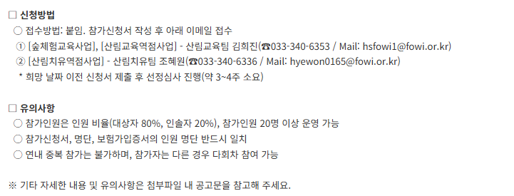 2025년 4분기 3차 국립횡성숲체원 나눔의 숲 캠프 수시모집 공고